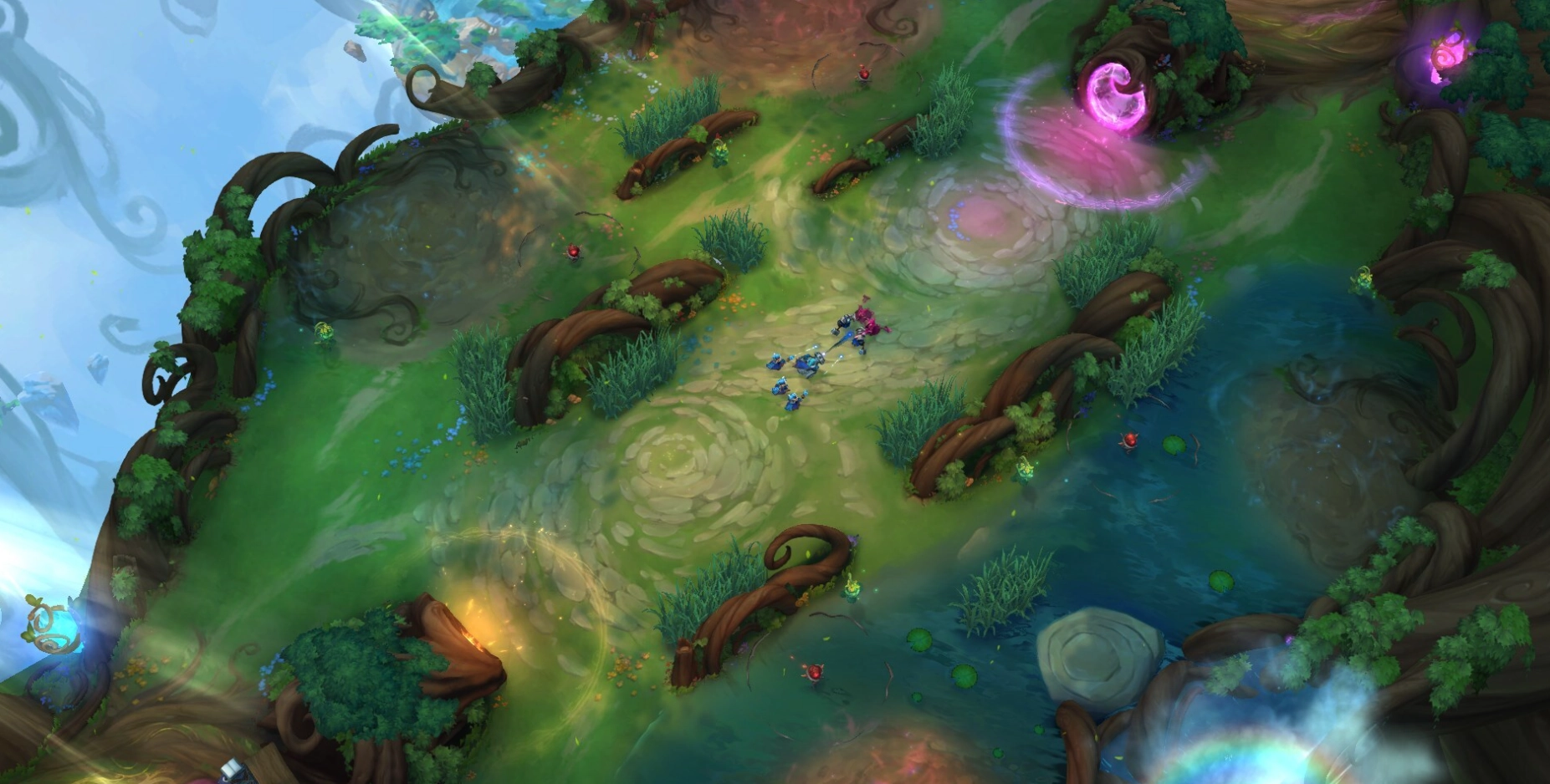 La map, c’est une lane, deux jungles miniatures (pour les buffs), et deux portails (Bandle, comme en ARAM).