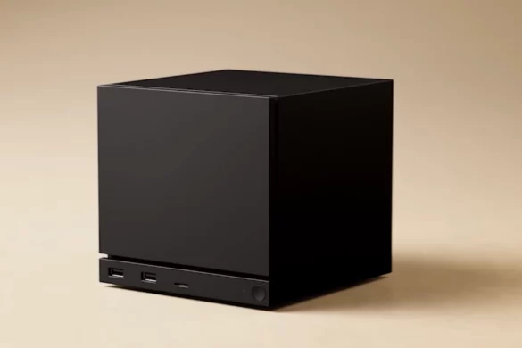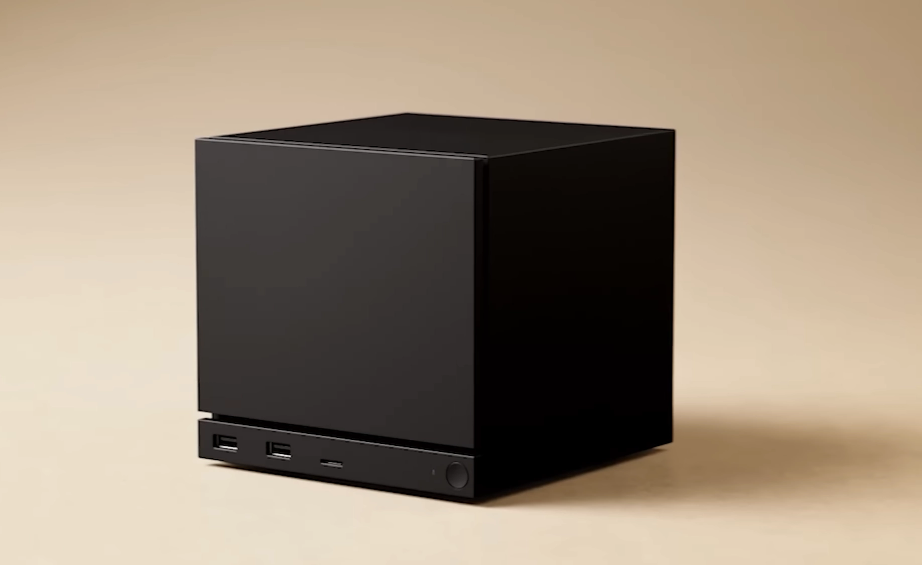 Le design choisi par Valve n’a rien d’extravagant. Il s’agit d’un boîtier compact, presque cubique, pensé pour se fondre dans un meuble TV. À l’intérieur, Valve a intégré un refroidissement imposant et une alimentation interne, ce qui évite d’avoir à planquer un énorme bloc d’alimentation derrière la télévision. L’appareil propose une connectique complète : sorties vidéo modernes, ports USB en façade, slot microSD et un emplacement SSD remplaçable.
